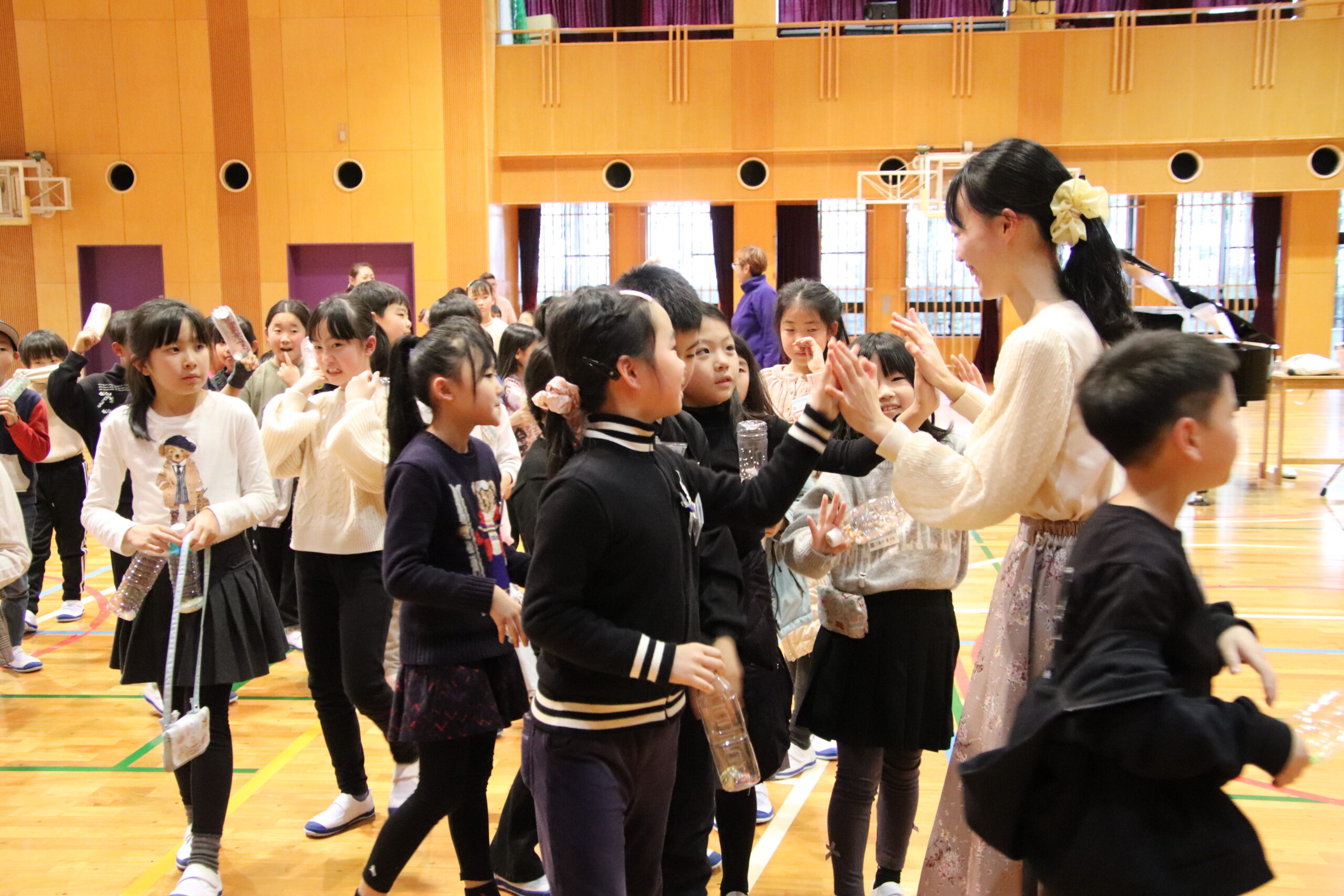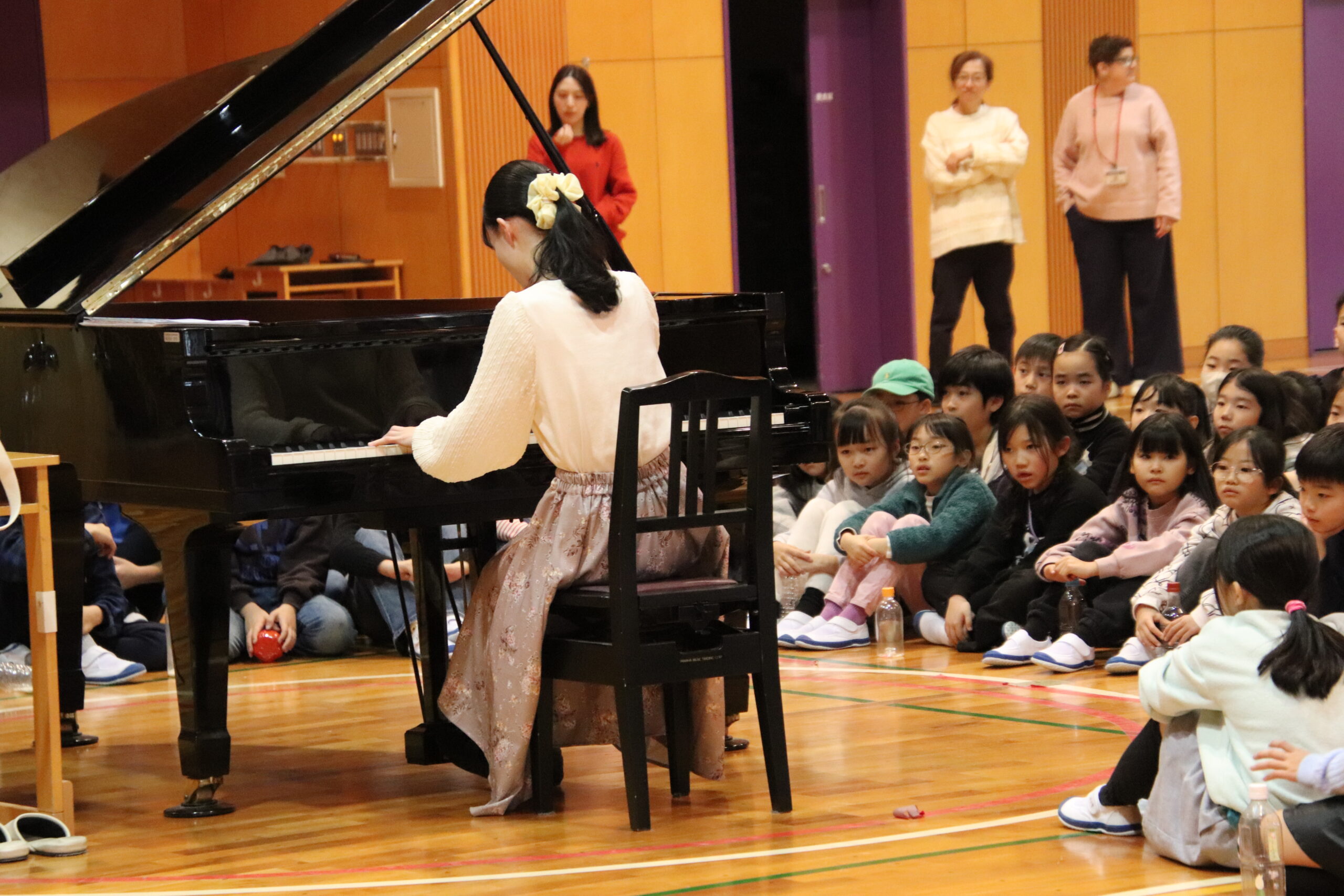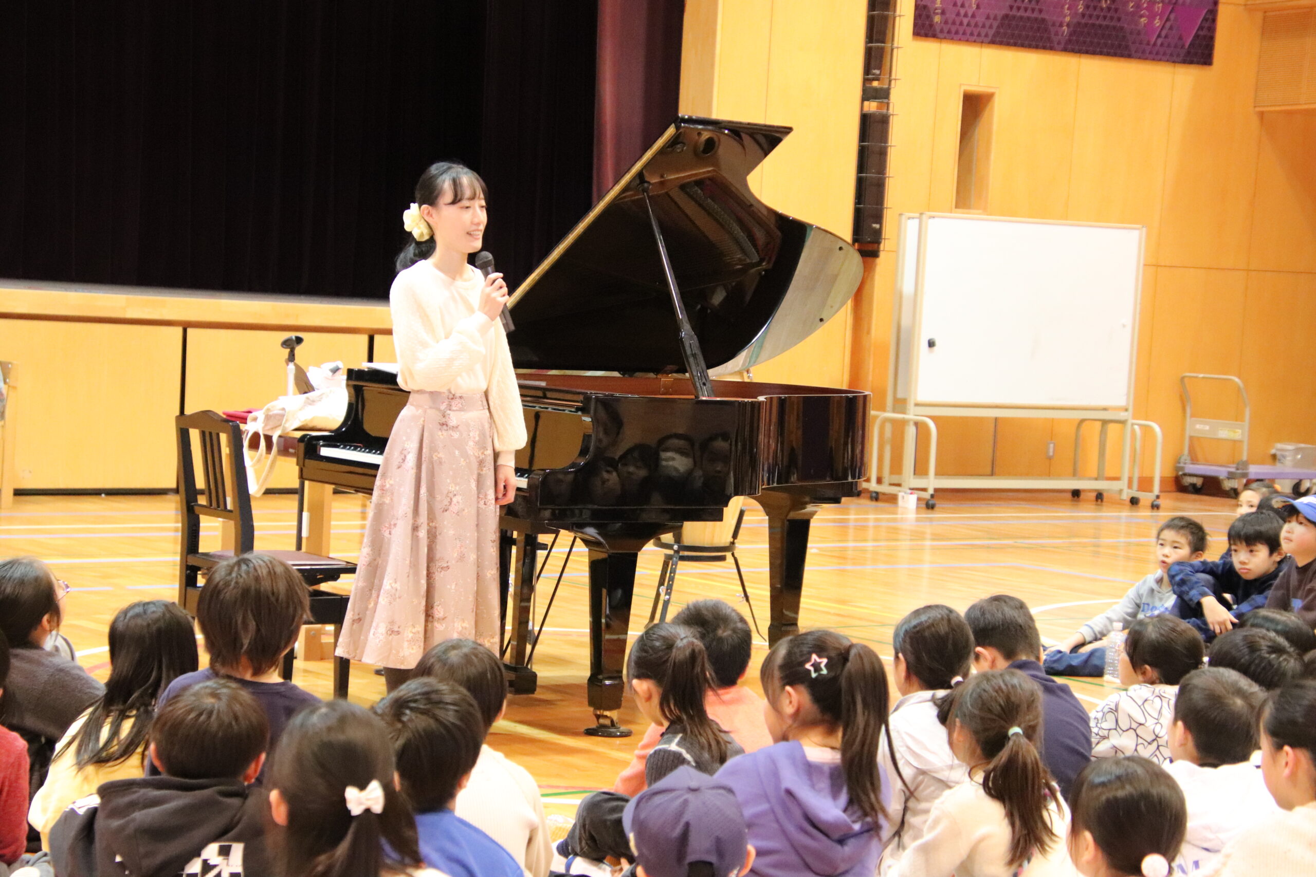ゲストピアニストの宮國香菜さんはたまて箱を開けるように、子どもたちを音楽の世界へ誘ってくれました。