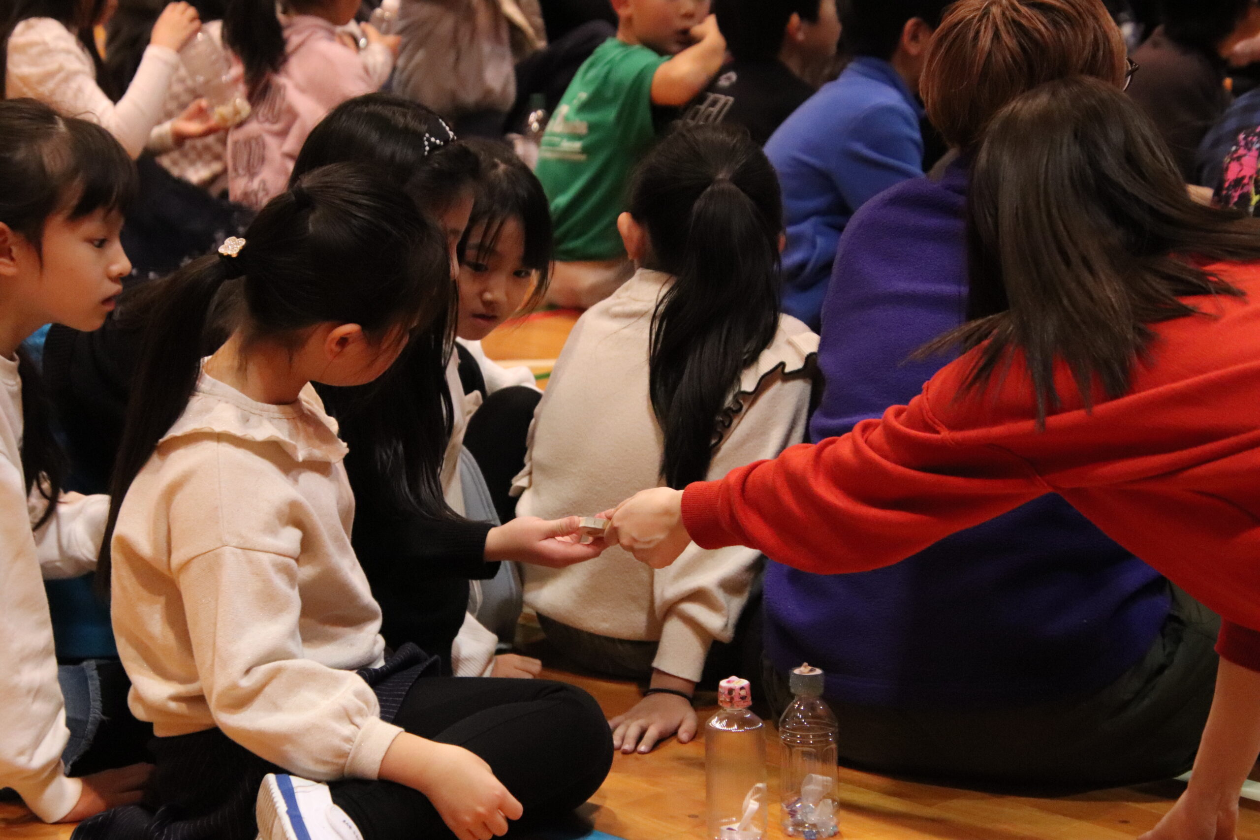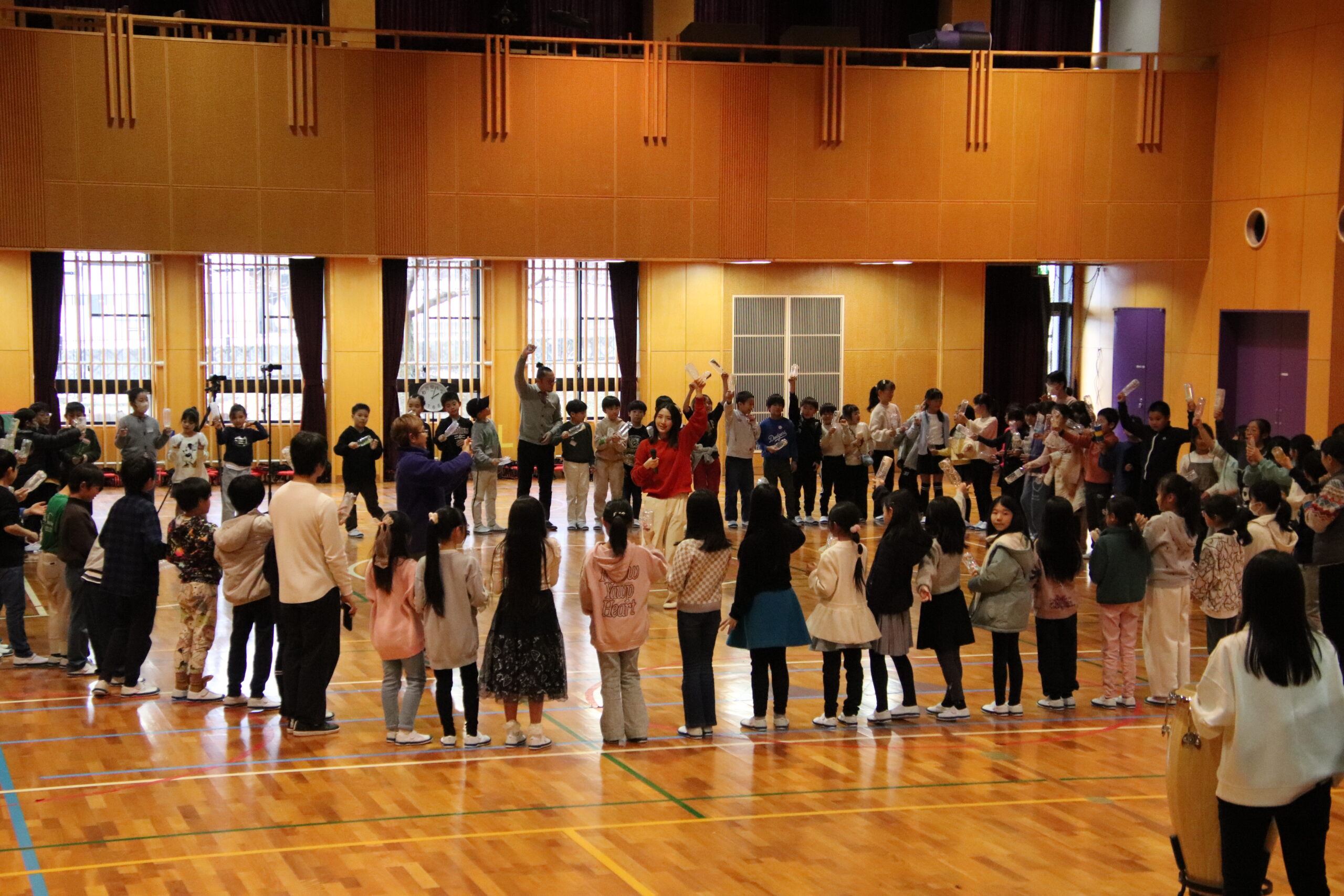ピアノのすぐ近くに座った子どもたちが、コロコロと転がるように響く音色に自然と聴き入っていく様子がとても印象的で、手作りのペットボトルマラカスを使ってピアノ伴奏に合わせて歌ったり、輪になって音楽を楽しんだり、床に寝転がってゆったりと耳を傾けたりと、自由でリラックスした雰囲気の中で音楽に親しみました。